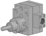 Sur la plaque intermédiaire, G1/4'' (6cm3/tr), G1/2'' (10 + 16cm3/tr), G3/4'' (22cm3/tr)